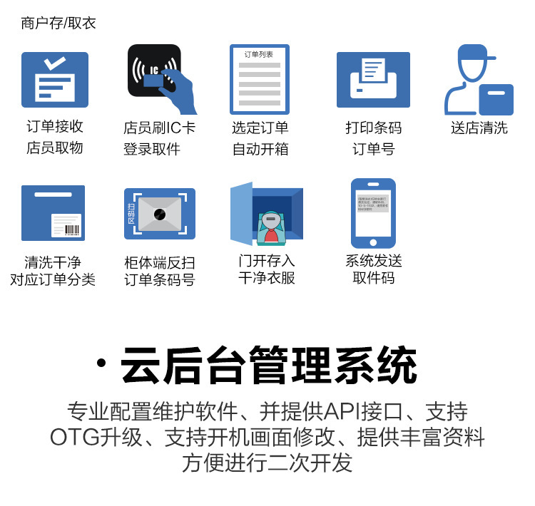 當(dāng)今大數(shù)據(jù),人工智能,物聯(lián)網(wǎng)等技術(shù)手段的革新,自助經(jīng)濟(jì)服務(wù),給人們帶來方便和全新的購物體驗(yàn)。把生活與智能化緊密結(jié)合,提升生活幸福感。智能洗衣柜是顧客與洗衣店之間的物流智能柜,洗衣店為需要洗衣、洗鞋、干洗等用戶提供全天24小時(shí)自助服務(wù)。